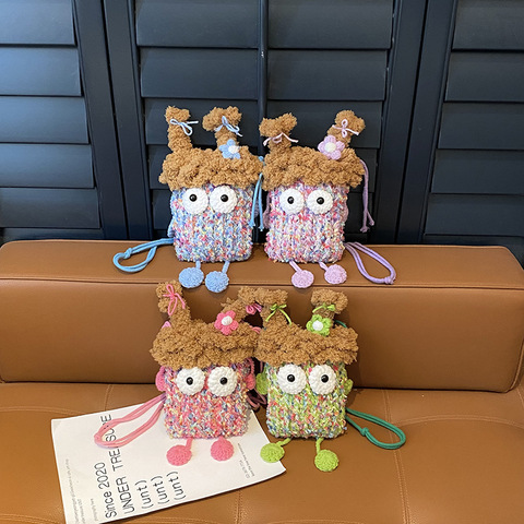 Changxu Tex 2025 của phụ nữ Móc Len Vai Túi mới thời trang Hàn Quốc Crossbody Túi Dễ Thương vui động vật hoa hải lý