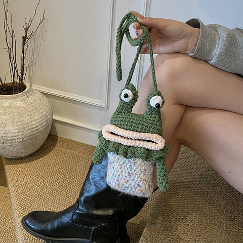 Changxu 2025 mùa thu mùa đông handmade len Crochet điện thoại túi dễ thương vui Xúc Xích Miệng phim hoạt hình ếch Thiết kế động vật nhân tạo phong cách